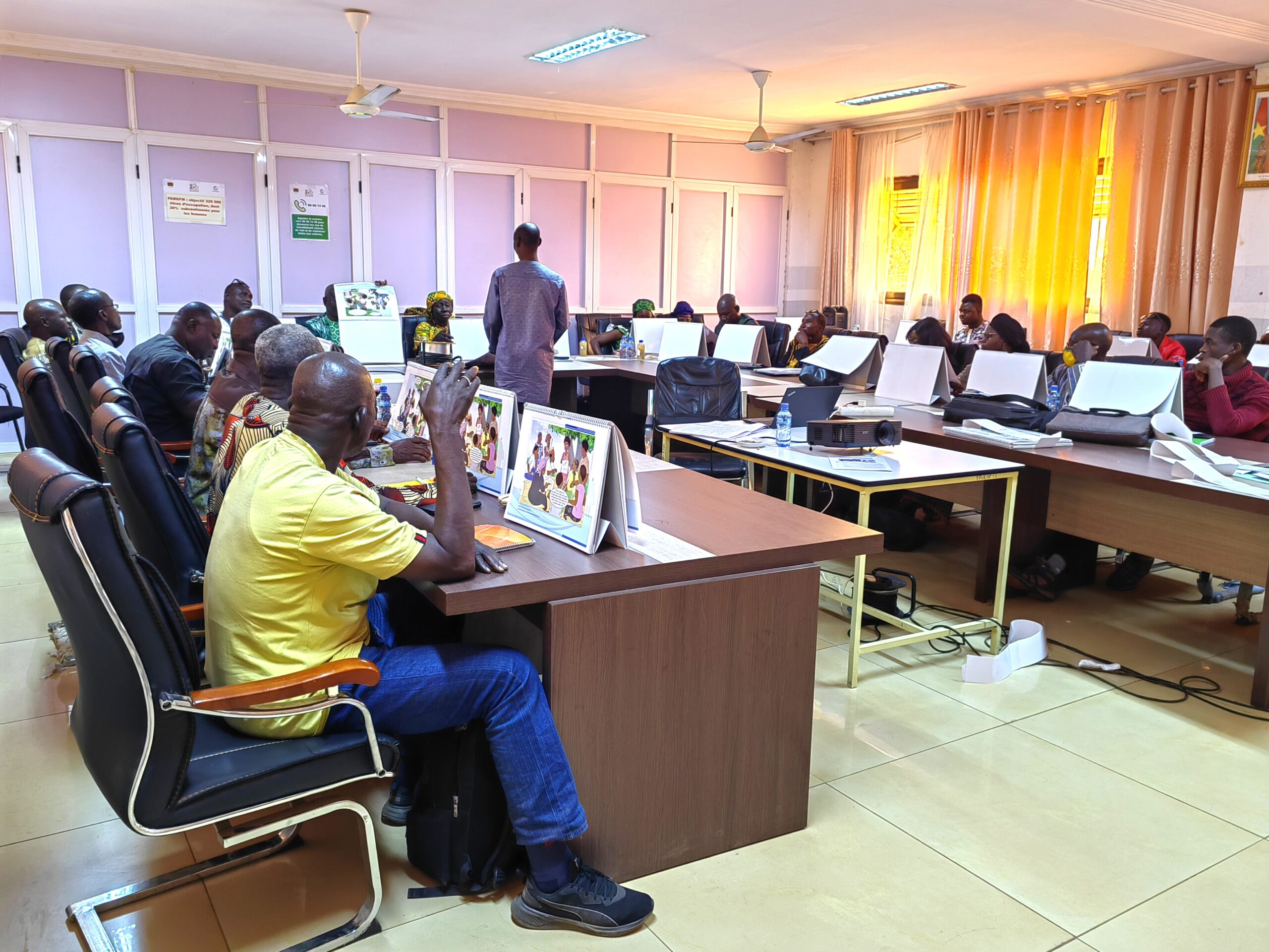 Cette formation visait à outiller les animateurs afin qu’ils puissent former et sensibiliser efficacement les acteurs locaux sur la loi n°034-2009 portant régime foncier rural ainsi que sur les directives volontaires en matière de gouvernance foncière responsable. L’initiative répond à un besoin crucial d’information et de compréhension du foncier notamment dans les zones rurales où le taux d’analphabétisme demeure élevé.