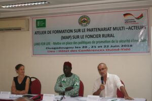 Monsieur Bénéwendé Rouamba chef du projet, Partenariat multi Acteurs (MAP) sur le foncier rural ou initiative Land for Life au Burkina Faso, nous explique que c’est une plateforme qui travaillera avec tous les acteurs en vue de faire des plaidoyers pour la sécurisation des fonciers des petits exploitants au Burkina Faso. Les activités vont couvrir toute l’étendue du territoire, avec un accent particulier dans les zones où l’accaparement des terres est plus criard.