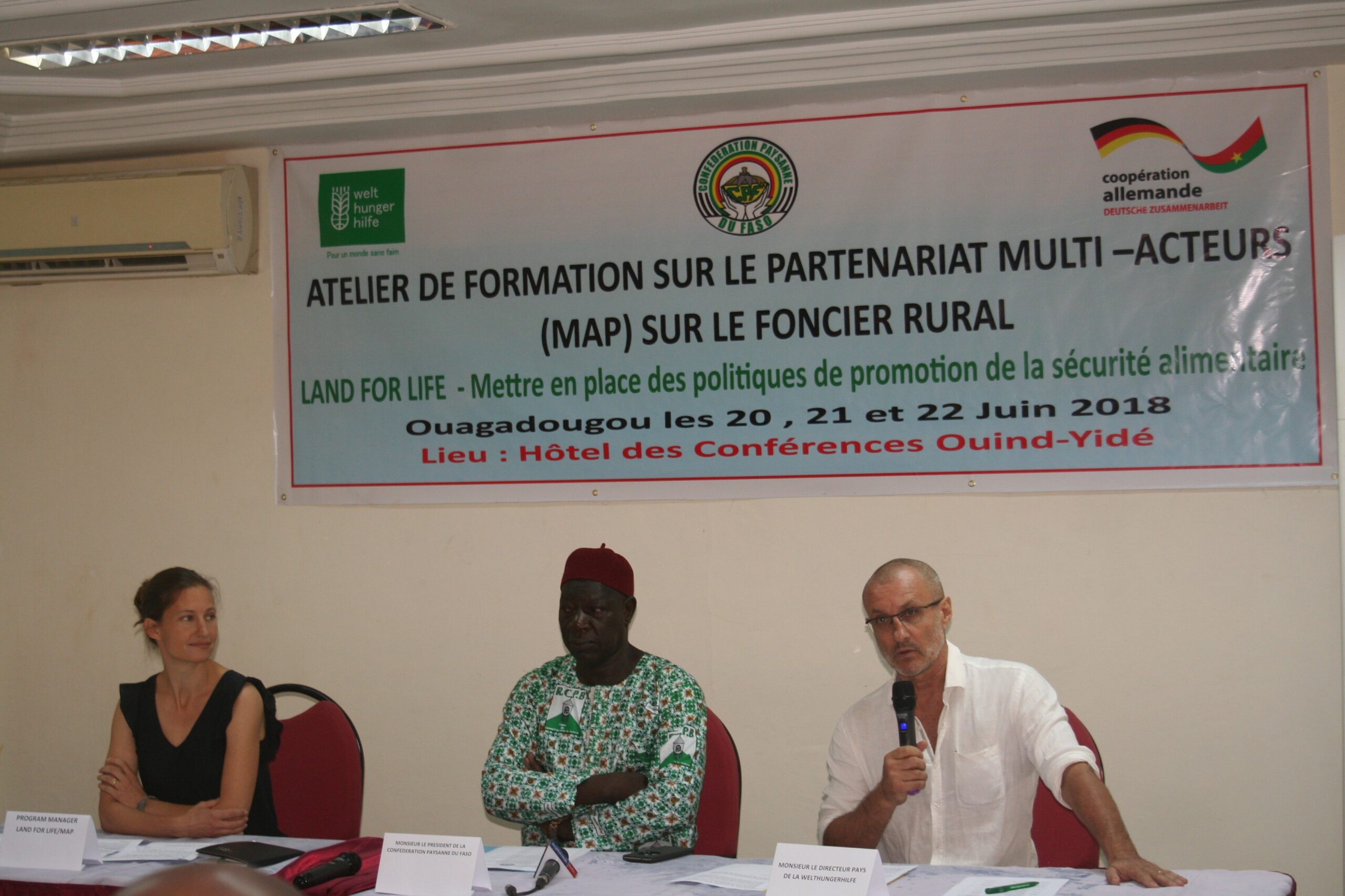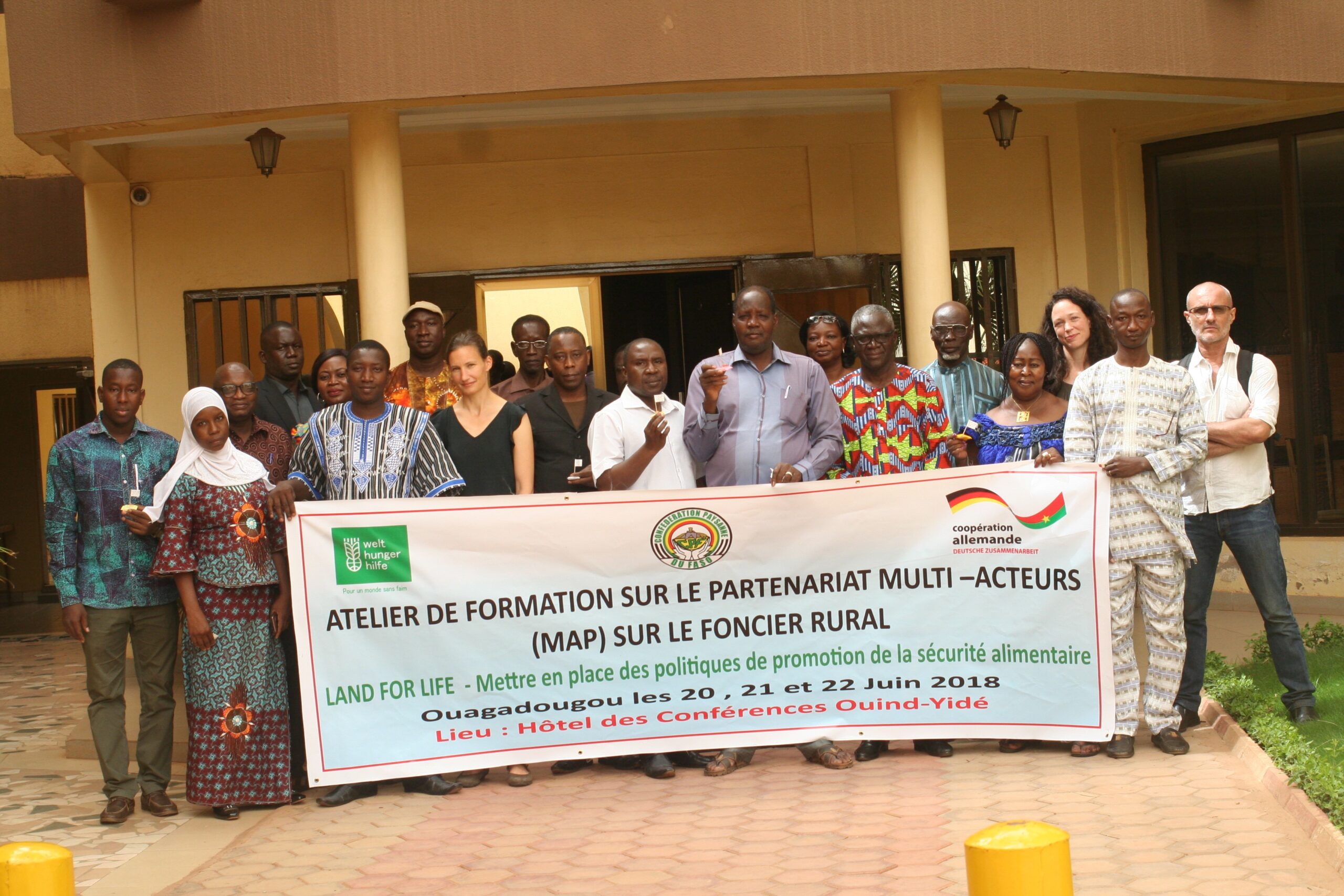 Après son lancement tenu le 5 Avril 2018, l’Initiative Land for Life , fruit de la collaboration entre la Confédération Paysanne du Faso, l’ONG WeltHunger(WHH) et de la Coopération allemande, passe à une autre étape. Celle qui vise à renforcer les capacités des parties prenantes (OSC, Gouvernement, Secteur privé, organisations des producteurs, monde de la recherche…) pour les processus multi acteurs et les compétences spécifiques des acteurs de la société civile pour défendre les intérêts des petits exploitants et autres groupes vulnérables.