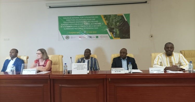 Un Dialogue national sur l’utilisation des directives volontaires pour une gouvernance responsable des régimes fonciers applicables aux terres, aux pêches et aux forêts dans le contexte de la sécurité alimentaire nationale au Burkina Faso s’est tenu ce jeudi 16 juin 2022 à Ouagadougou. Il s’agissait de faire le bilan et de proposer des perspectives pour les 10 ans des directives volontaires.